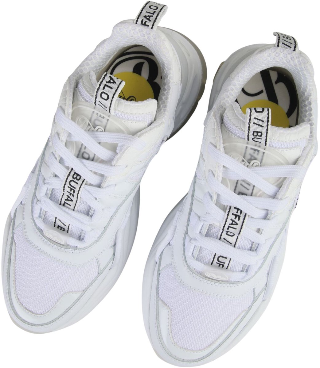 Stap in stijl met de TRIPLET HOLLOW lage sneakers van BUFFALO. Deze witte sneakers zijn perfect voor dames die op zoek zijn naar een trendy en comfortabele schoen. De leatherlook en mesh buitenkant geeft de sneakers een luxe uitstraling, terwijl de glanzende panelen zorgen voor een speels en opvallend effect. De chunky zool zorgt voor extra grip en geeft de schoenen een stoere touch. De sneakers sluiten met veters en hebben ee... lees meer over dit product