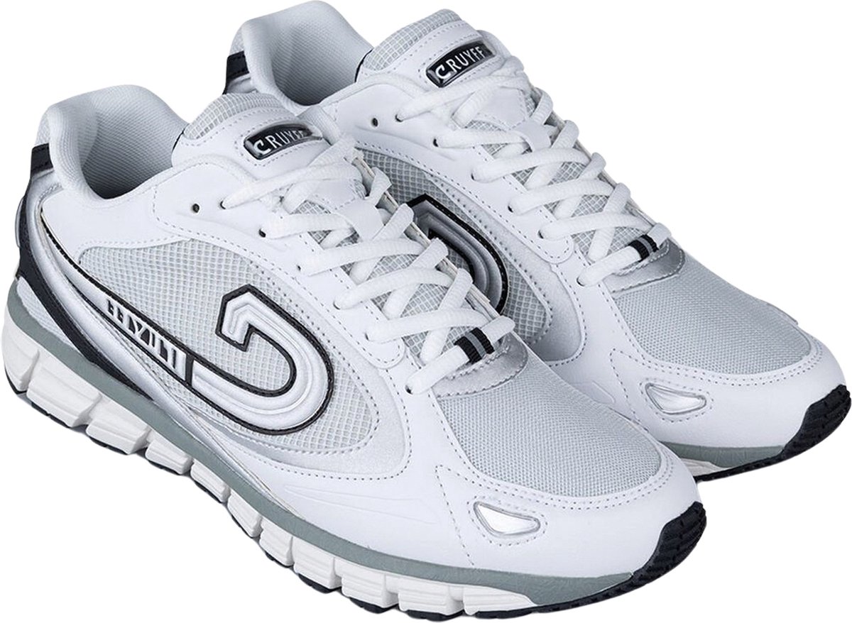 Specificaties: Pasvorm: normale pasvorm; vetersluiting Bovenwerk: textiel met synthetisch leer Demping: EVA tussenzool geeft ondersteuning en demping Buitenzool: rubberen buitenzool Kleur: wit - zilver - zwart Materiaal: textiel - synthetisch materiaal - rubber lees meer over dit product
