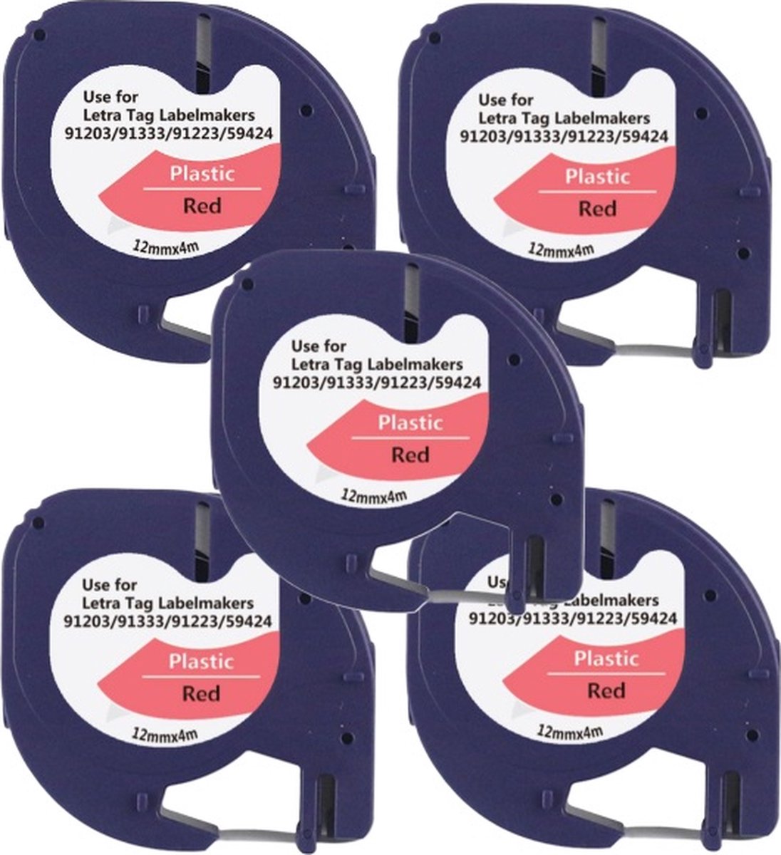 - Label geschikt voor 91203: Zwart op Rood : 12 mm x 4 m