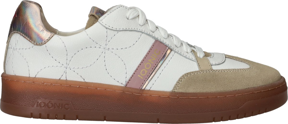 Kies voor deze mooie damessneaker van IQÔNIC! De sneaker is wit en beige van kleur en heeft leuke accenten van metallic en roze. Ook krijg je bij deze schoenen een extra setje veters.