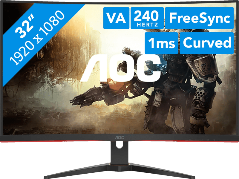 De AOC C32G2ZE/BK is een krachtige LED-monitor met VA-technologie en heeft een beeldschermdiagonaal van 80 cm (32") met een Full HD-resolutie (1920 x 1080 pixels) voor een briljante weergave. Dankzij de kromming van 1500R helpt het paneel de speler om alle inhoud beter te herkennen en het heeft een pixelresponstijd van 1ms zodat de beelden extreem snel worden geconverteerd. Hierdoor krijgen vegen of ghosting geen kans. Met AMD Free-Sync (Premium) wordt elk spel vloeiender, waardoor het een compleet nieuwe ervaring wordt. De AOC C32G2ZE/BK heeft een HDMI- en DisplayPort-ingang zodat hij compatibel is met bijna alle apparaten.