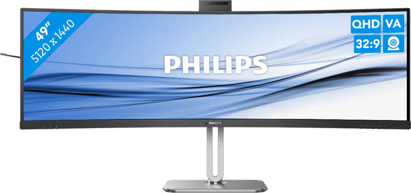 Welkom bij een efficiëntere werkplek. Om de dagelijkse workflow te vergemakkelijken, is het grote 32:9 Superwide-scherm van de Philips 49B2U5900CH/00 uitgerust met een nieuwe kantelbare webcam-functie waarmee je eenvoudig tussen taken kunt schakelen. Desktopmonitoren bieden een persoonlijke gebruikerservaring, waar een gebogen design zeer goed bij aansluit. Het gebogen scherm zorgt voor een aangenaam, maar subtiel effect, waarbij al jouw aandacht uitgaat naar het scherm midden op jouw bureau. Het 32:9 SuperWide 49 inch scherm, met 5120 x 1440 resolutie, is ontworpen als vervanging voor meerdere schermen, voor een brede opstelling. Het is alsof je twee 27 inch 16:9 Quad HD-schermen naast elkaar hebt staan. SuperWide-monitoren bieden het weergavegebied van twee monitoren zonder ingewikkelde configuratie. De DisplayHDR 400 is VESA-gecertificeerd en biedt een compleet andere configuratie dan normale SDR-schermen. In tegenstelling tot andere schermen die met HDR compatibel zijn, levert de DisplayHDR 400 verbluffende helderheid, kleuren en een verbluffend contrast. Dankzij de dimfunctie en hoogwaardige helderheid tot wel 400 nits komen de beelden tot leven met duidelijke felle delen die zorgen voor dieper genuanceerd zwart. De rijkere schakering van nieuwe kleuren biedt een visuele ervaring die jouw zintuigen zal prikkelen. Vereenvoudig alle randapparatuur van monitor tot pc met een USB type-C-aansluiting met één kabel, inclusief netwerk, video-uitvoer met hoge resolutie van pc naar monitor en surfen op internet zonder extra netwerkkabel, zelfs zonder LAN-poort op je laptop. De RJ45-aansluiting via USB-C biedt een snelle en veilige verbinding wanneer dat nodig is. Met de hoogste gegevenssnelheden kan je gegevens sneller dan ooit van een HDD naar jouw PC overbrengen. Bovendien kan je met USB-C met stroomvoorziening je laptop zelfs van stroom voorzien en opladen via de monitor, zodat je geen extra voedingskabels meer nodig hebt. In tegenstelling tot traditionele ingebouwde KVM-monitorknop, kan je met de slimme KVM met één druk op de knop op jouw toetsenbord tussen bronnen schakelen. Wanneer alle apparaten correct zijn aangesloten, kunnen gebruikers eenvoudig schakelen tussen bronnen door drie keer op de 'Ctrl'-toets te klikken. De Philips VA LED-monitor gebruikt de Advanced Multi-Domain Vertical Alignment-technologie waardoor je zeer hoge contrastverhoudingen krijgt voor extra levendige en heldere beelden. De monitor verwerkt standaardkantoortoepassingen zonder problemen, maar hij is vooral geschikt voor foto's, surfen op internet, films, games en veeleisende grafische toepassingen. Dankzij de geoptimaliseerde pixelbeheertechnologie ontstaat er een extra brede kijkhoek van 178/178 graden, zodat je geniet van scherpe beelden. De Busylight functie zorgt voor privacy en optimale samenwerking wanneer je in een drukke kantooromgeving werkt. Als je wilt verzenden naar anderen die bezet zijn, kan je gewoon op de sneltoets Busylight drukken in het menu linksonder op het montagekader van de monitor. Het lampje op de webcam wordt rood. Daarnaast kan de Busylight-functie ook worden gesynchroniseerd met de Microsoft Teams-status van de gebruiker. De Compact Ergo Base is een gebruiksvriendelijke monitorvoet van Philips met kantel-, zwenk- en hoogteverstellingsfuncties waarmee iedere gebruiker de monitor kan verstellen voor optimaal kijkcomfort en maximale efficiëntie. Maak videovergaderingen nog comfortabeler met deze functie. Door de webcam 30 graden naar achteren te verstellen, kunnen gebruikers nu comfortabel bellen en vergaderingen bijwonen vanuit elke positie die het beste bij hen past. De innovatieve en veilige webcam wordt weergegeven wanneer je deze nodig hebt en schuift terug in de monitor wanneer je het apparaat niet gebruikt. De webcam is ook uitgerust met geavanceerde sensoren voor Windows Hello gezichtsherkenning, waarmee je in minder dan 2 seconden wordt aangemeld op jouw Windows-apparaten, dat is 3 keer sneller dan het invoeren van een wachtwoord.