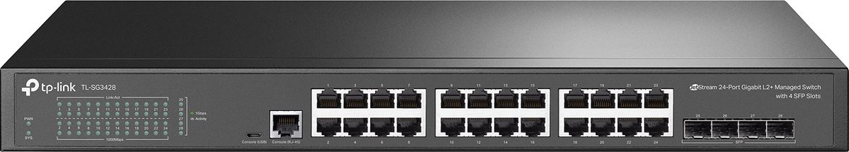 De TP-Link TL-SG3428 JetStream 24-poorts switch met 4 SFP-poorten en L2+-beheer is een zeer praktische en betrouwbare gigabit switch. Eenvoudig te beheren via een intuïtieve online GUI of standaard CLI. De beveiligingsfuncties omvatten IP-MAC-Port-VID Binding, Port Security, Storm Control en DHCP Snooping om het netwerk tegen verschillende soorten aanvallen te beschermen. De Omada SDN-oplossingen helpen bij het opzetten en beh... lees meer over dit product