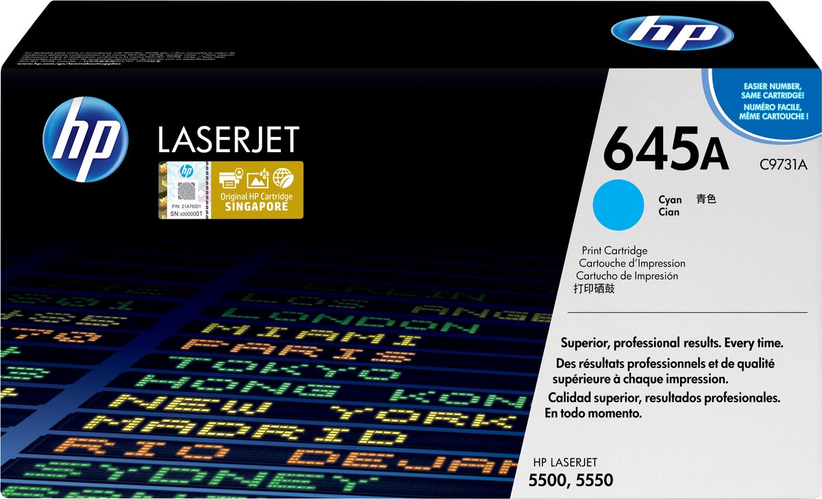 HP C9731A|645A Tonercartridge cyan, 12.000 Paginas/5% voor Color LaserJet 5500/5500 DTN/N/5550/5550 DN/DTN/HDN lees meer over dit product