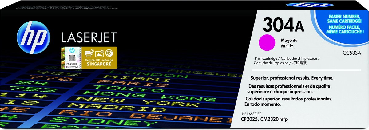 Return to the office without forgetting a single thing! Buy Original Toner HP CC533A Magenta and be the envy of your colleagues! Type: Original Width: 385 MM Colour: Magenta Compatible: LaserJet CP2025/ LaserJet CM2320nfp Printer HP HP LaserJet CM2320, CP2025 Technology: Laser Number of Poles: 1 uds Working range for humidity: 10 % - 80 % Approx. temperature: -20º / 40º Working range for temperature: 10º / 30º Characteri... lees meer over dit product