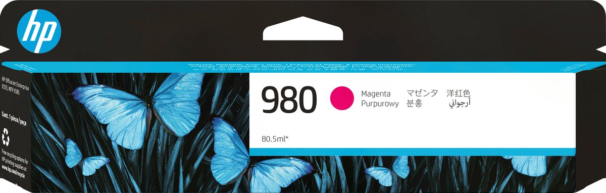 HP D8J08A|980 Inktcartridge magenta, 6.600 Paginas ISO/IEC 24711, Inhoud 80,5 ml voor OfficeJet Enterprise Color Flow X 585 z MFP/X 555 dn/xh/585 dn MFP/f MFP lees meer over dit product