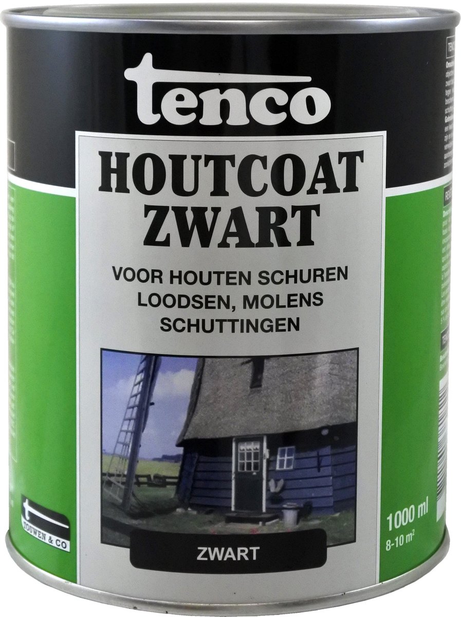 Tenco Houtcoating is een speciale, teervrije, coating voor houten objecten welke voorheen zijn behandeld met teerproducten. Op basis van alkydhars en zwarte pigmenten. Verfraait en behoudt het karakteristieke uiterlijk. Voor onder andere schuren, loodsen en schuttingen. Bestand tegen weersinvloeden.