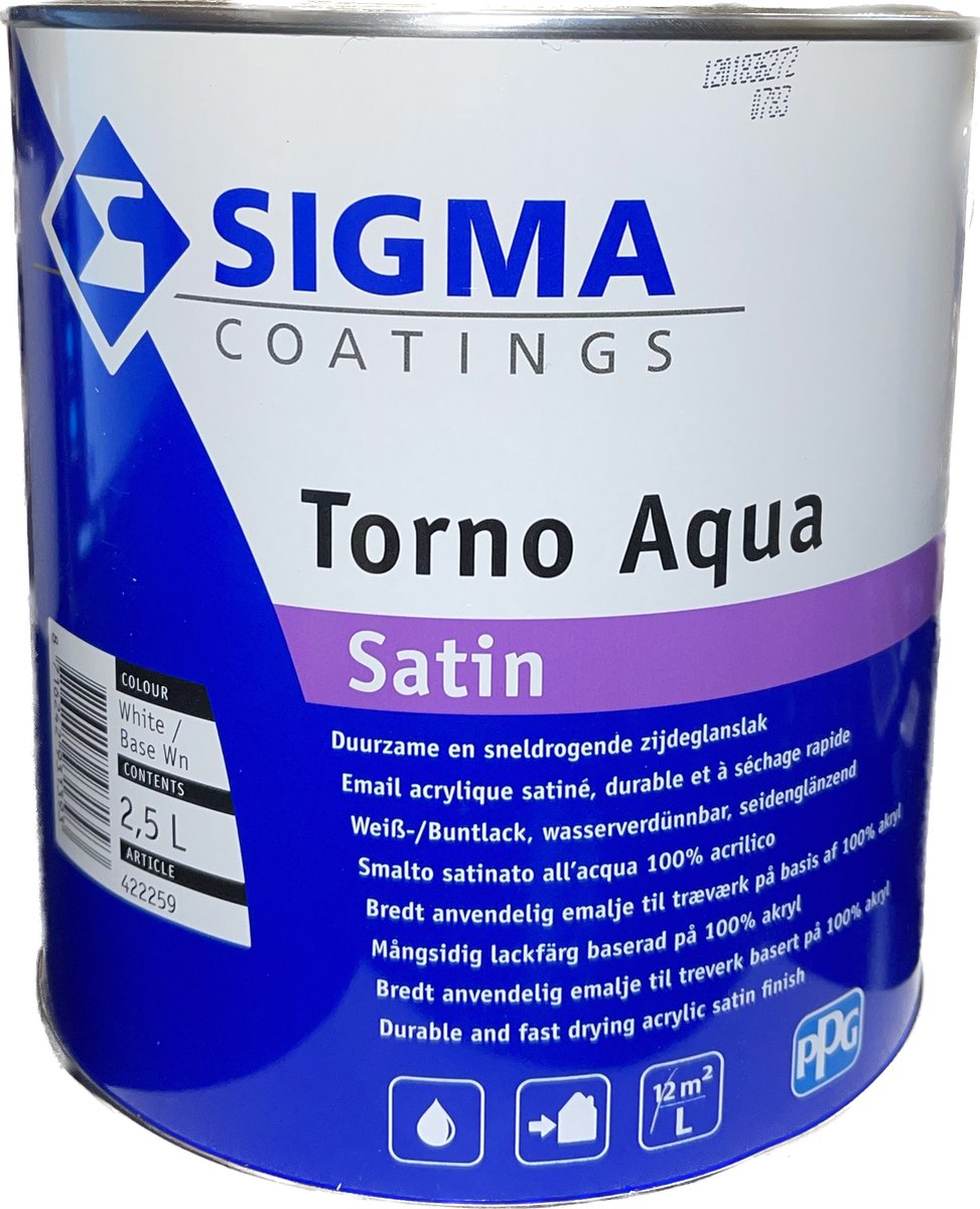 acrylaatdispersie. Je kunt Sigma Torno Aqua Satin eenvoudig aanbrengen met een kwast of roller. Sigma Torno Aqua Satin hoef je niet te verdunnen.