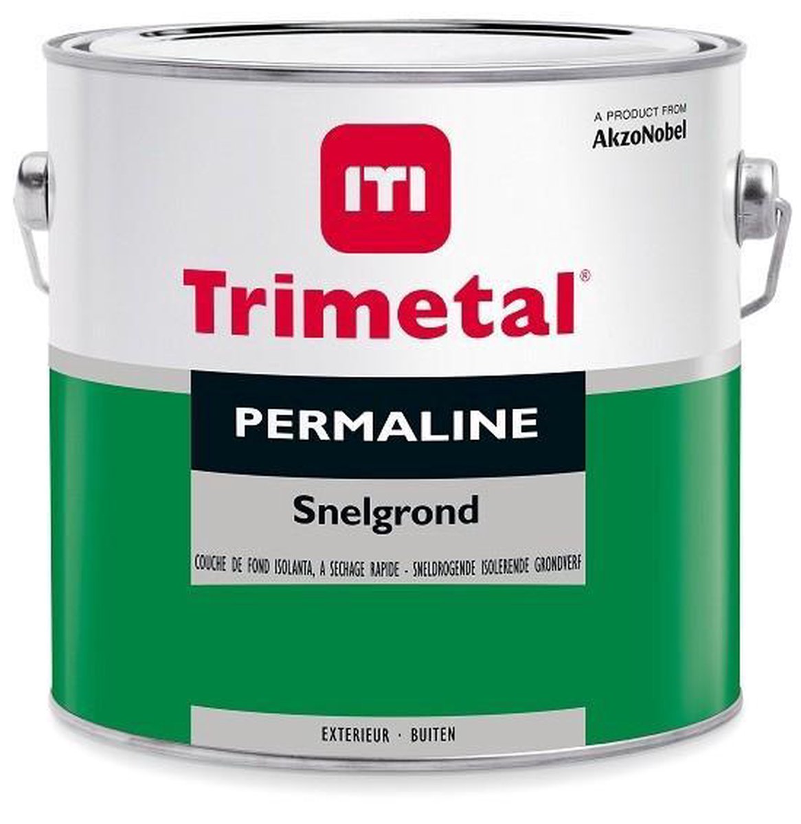 Trimetal Permaline Snelgrond - Sneldrogende grondlaag Omschrijving Permaline Snelgrond is een sneldrogende grondlaag op synthetische basis met vochtregulerende eigenschappen. Belangrijkste eigenschappen Zeer snelle droging Goede omhulling van de scherpe kanten Goede vloei Vochtregulerend lees meer over dit product