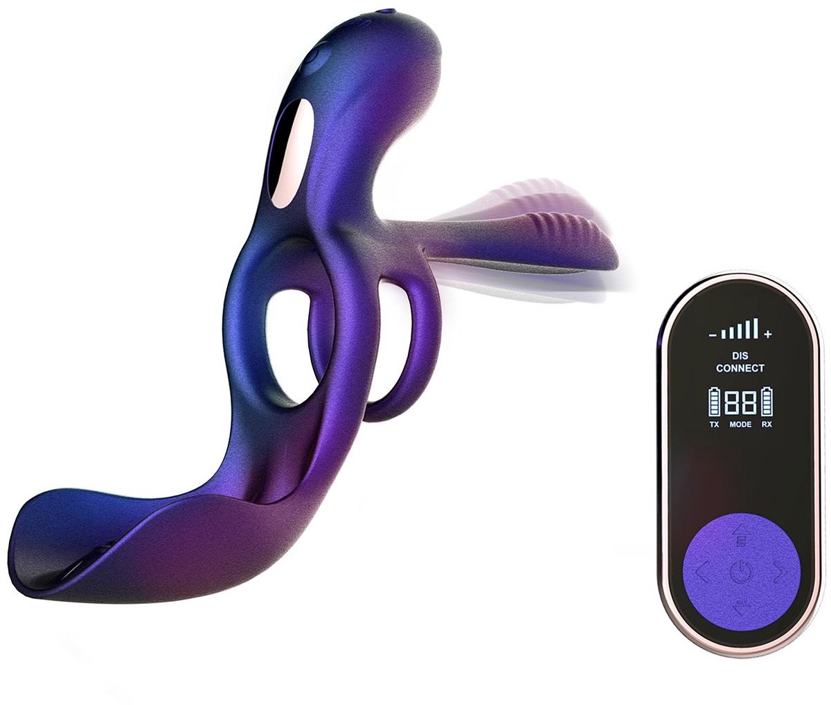 Hueman - Zenith Cockring met Eikel- en Perineumstimulator - Paars
