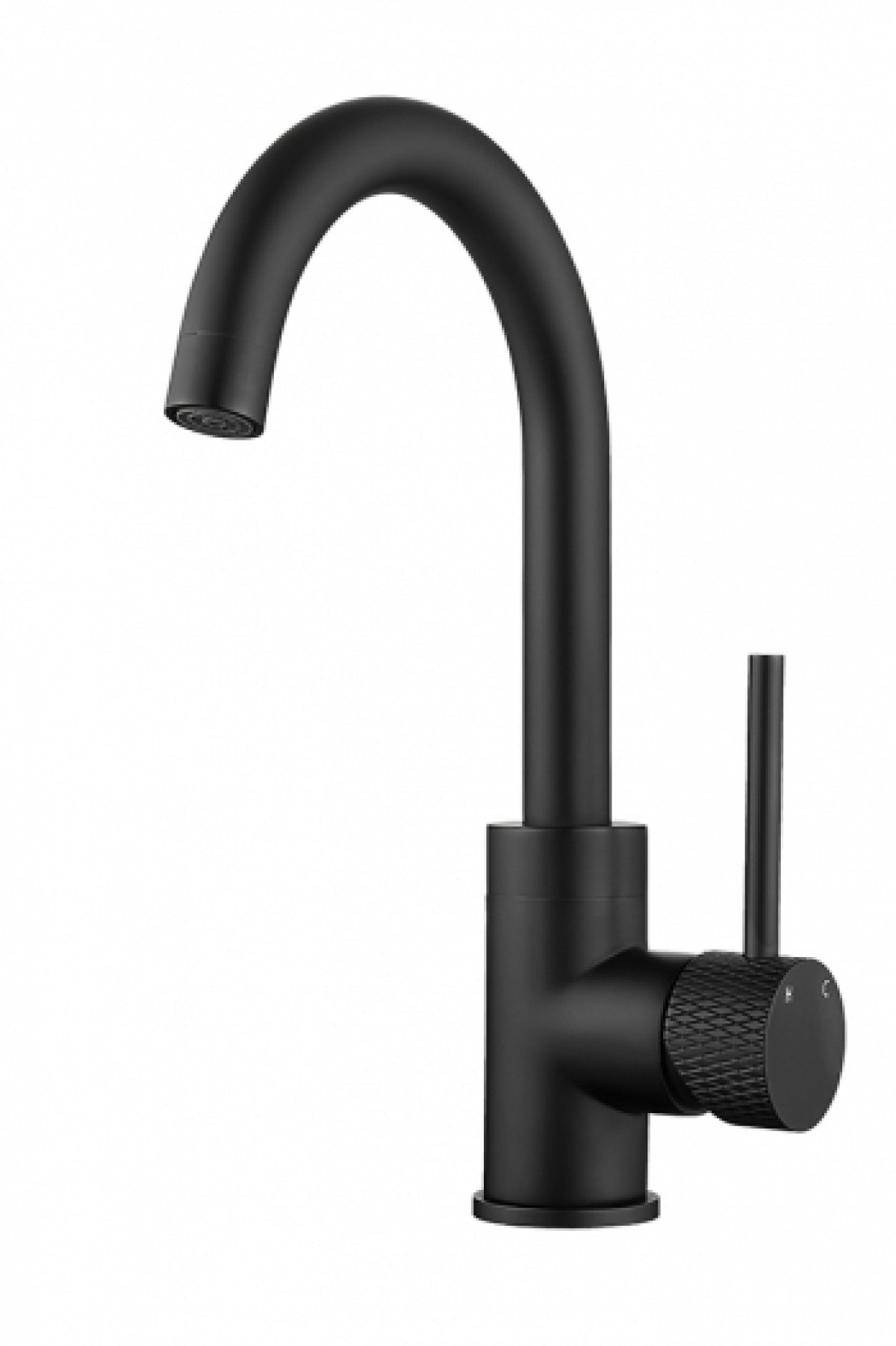 Wiesbaden Wiesbaden Ribbd wastafelkraan met draaibare uitloop mat zwart 29.5322