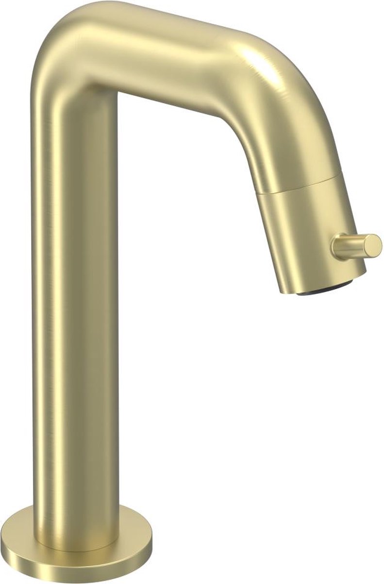 Elegantie in Geborsteld GoudDe Fonteinkraan Contour is een ware blikvanger voor uw badkamer of toiletruimte. Uitgevoerd in een luxueuze geborstelde gouden kleur, voegt deze kraan een vleugje elegantie toe aan elke ruimte. De oppervlakte is niet alleen prachtig om te zien, maar ook voorzien van een beschermende coating, waardoor de kraan bestand is tegen dagelijks gebruik en zijn glans behoudt.Gebruiksgemak en DuurzaamheidDeze staande fonteinkraan is ontworpen met het oog op gebruiksgemak. De eengreepshandeling maakt het eenvoudig om de waterstroom te regelen, terwijl het hoogwaardige messing materiaal garant staat voor duurzaamheid en een lange levensduur. De kraan is eenvoudig te installeren op het bladkraangat en wordt geleverd met bijpassende rozetten voor een naadloze afwerking.Technische Specificaties * Materiaal: Hoogwaardig messing * Kleurafwerking: Geborsteld goud met een gecoate beschermlaag * Montagewijze: Geschikt voor bladkraangatmontage * Uitvoering uitloop: Vaste U-uitloop met een voorsprong van 115 mm * Opbouwhoogte: 197 mm met een praktische hoogte van 130 mm onder het kraanmondstuk * Aansluiting aanvoer: Buitendraad met een maat van 12Met zijn stijlvolle uitstraling en betrouwbare werking is de Fonteinkraan Contour een uitstekende keuze voor wie op zoek is naar zowel functionaliteit als een luxe uitstraling in de sanitaire ruimte.