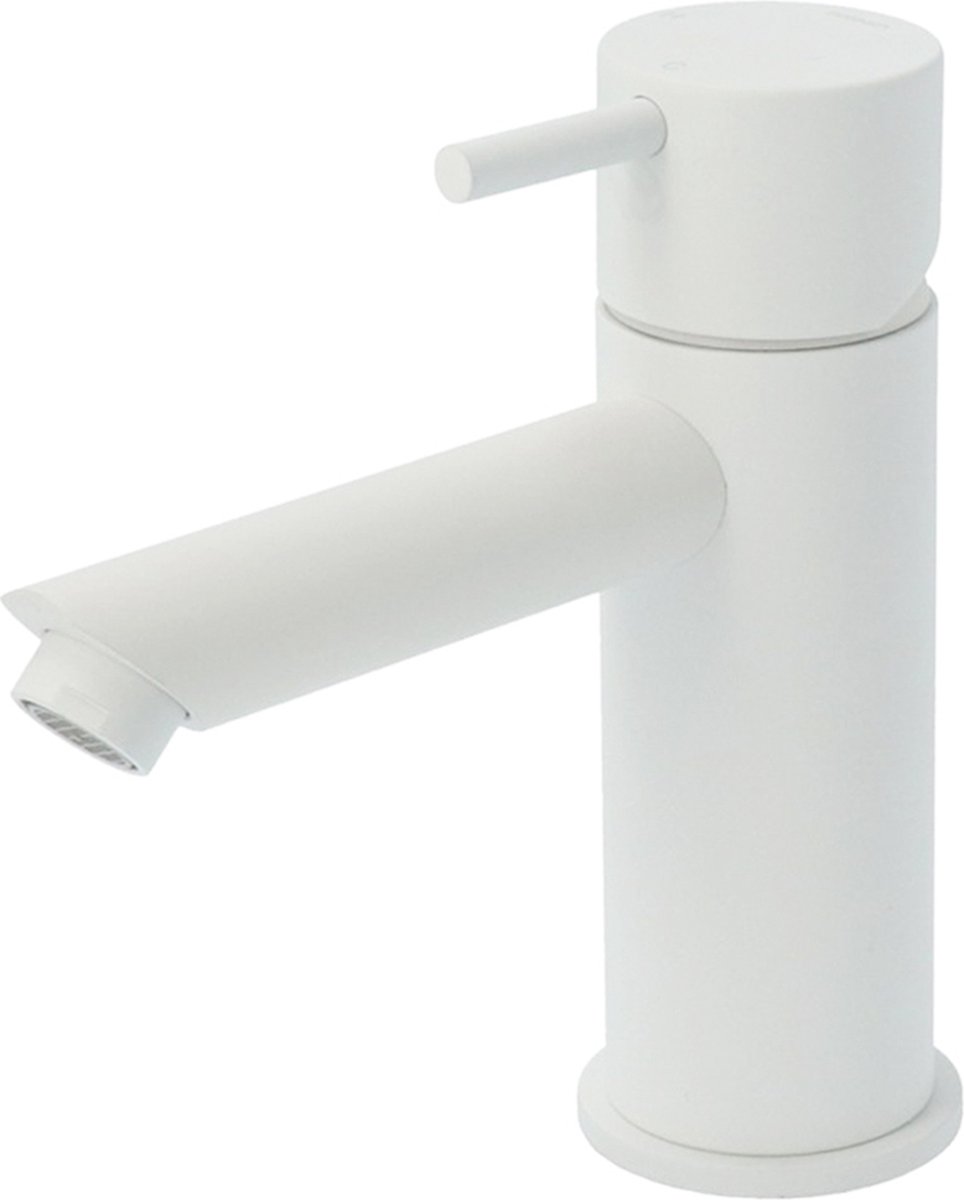 De kraan heeft de hoogte van 14.3 cm. Ook heeft de kraan een keramisch binnenwerk, dit houdt de hendel jarenlang soepel in zijn beweging om water door te laten en de kraan goed te sluiten. De praktische kraan is afgewerkt in een mat witte kleur en wordt geleverd exclusief waste. Ook verkrijgbaar in meerdere kleuren!