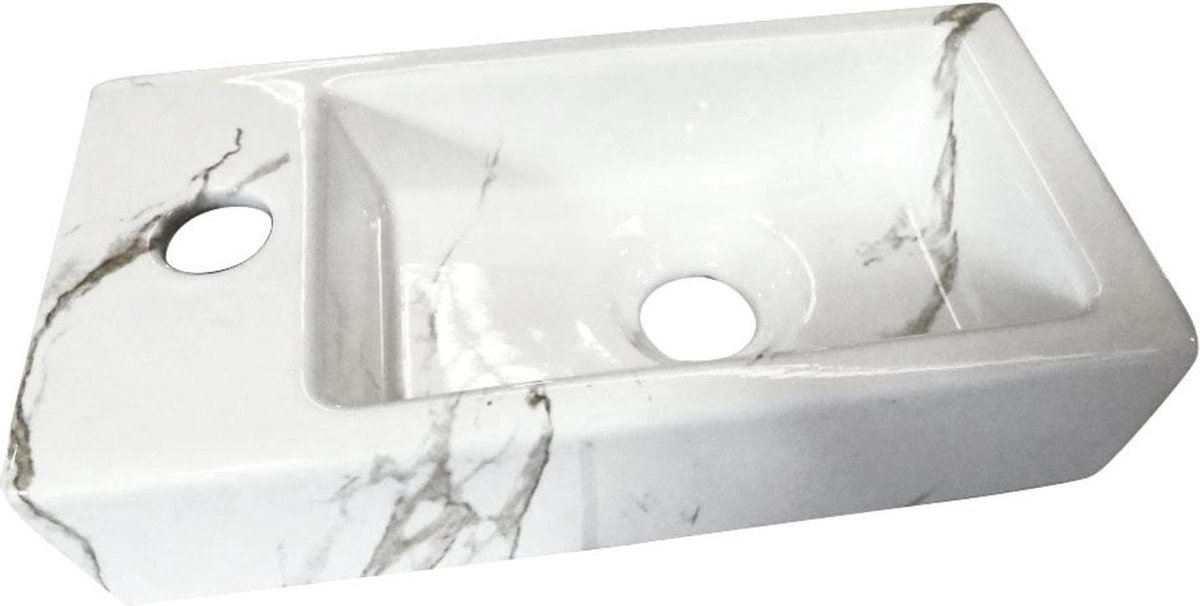 Wiesbaden Mini-Rhea links fontein 36x18x9cm Carrara marmerlook wit 32.5496