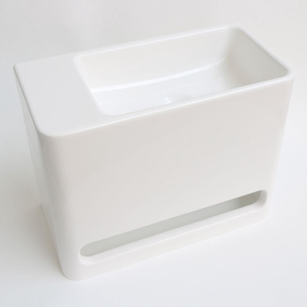 INK Hangar fontein Polystone links zonder kraangat 30x40x20cm Glans wit kopen? Bestel dan dit product van het kwalitatieve merk INK! lees meer over dit product