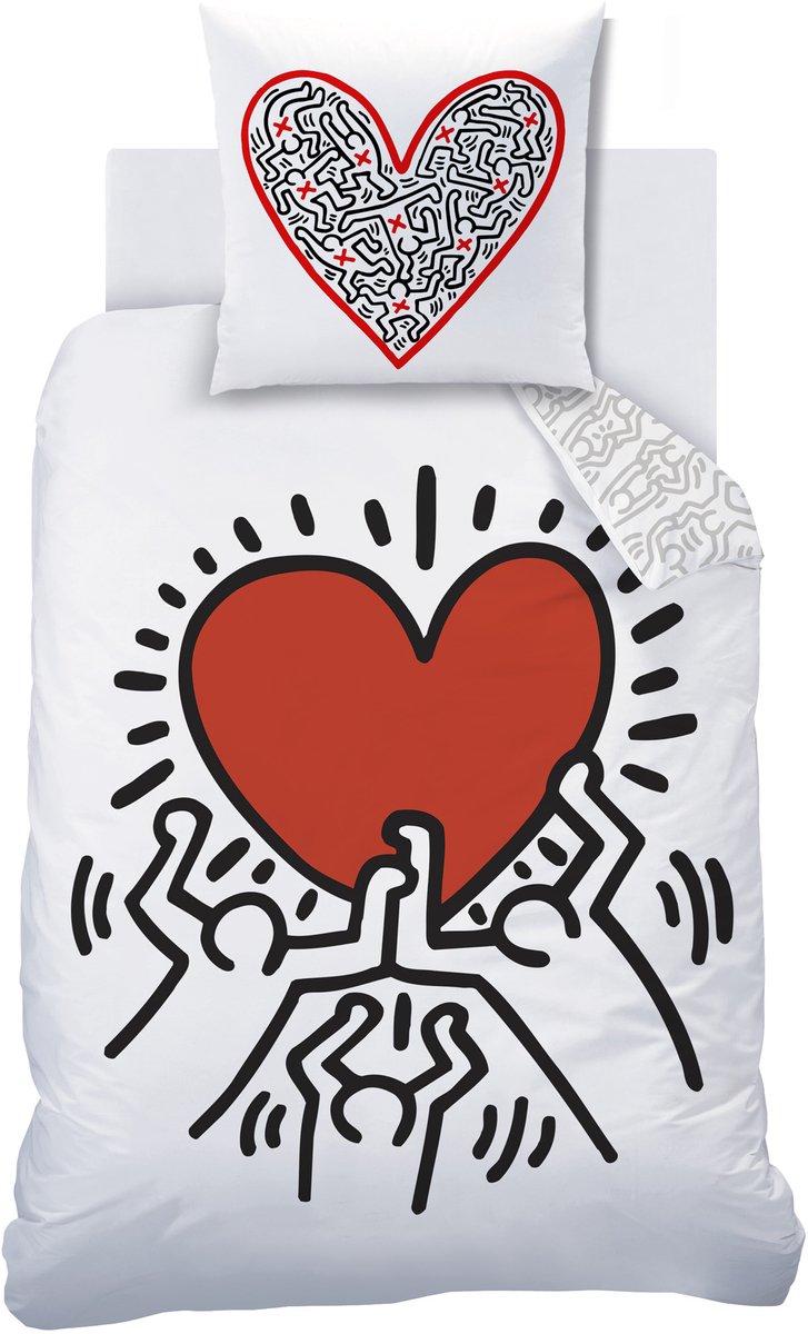 Breng de doodlingart van Keith Haring naar je slaapkamer met dit unieke dekbedovertrek! Het kleurrijke en iconische ontwerp is geïnspireerd op de wereldberoemde Popart stijl van kunstenaar Keith Haring, bekend om zijn levendige, dansende figuren en krachtige lijnen. Zijn kunst is vandaag de dag nog steeds geliefd vanwege de positieve energie en het grafisch karakter. Dit 1-persoons dekbedovertrek is gemaakt van 100% katoen, wat zorgt voor een comfortabel gevoel. Ideaal voor een goede nachtrust. Door de dubbelzijdige bedrukking, kan je ook nog eens af wisselen met het opmaken van het bed. Ben je nog op zoek naar een origineel cadeau voor, bijvoorbeeld en verjaardag, housewarming of de feestdagen? Zoek dan niet verder!