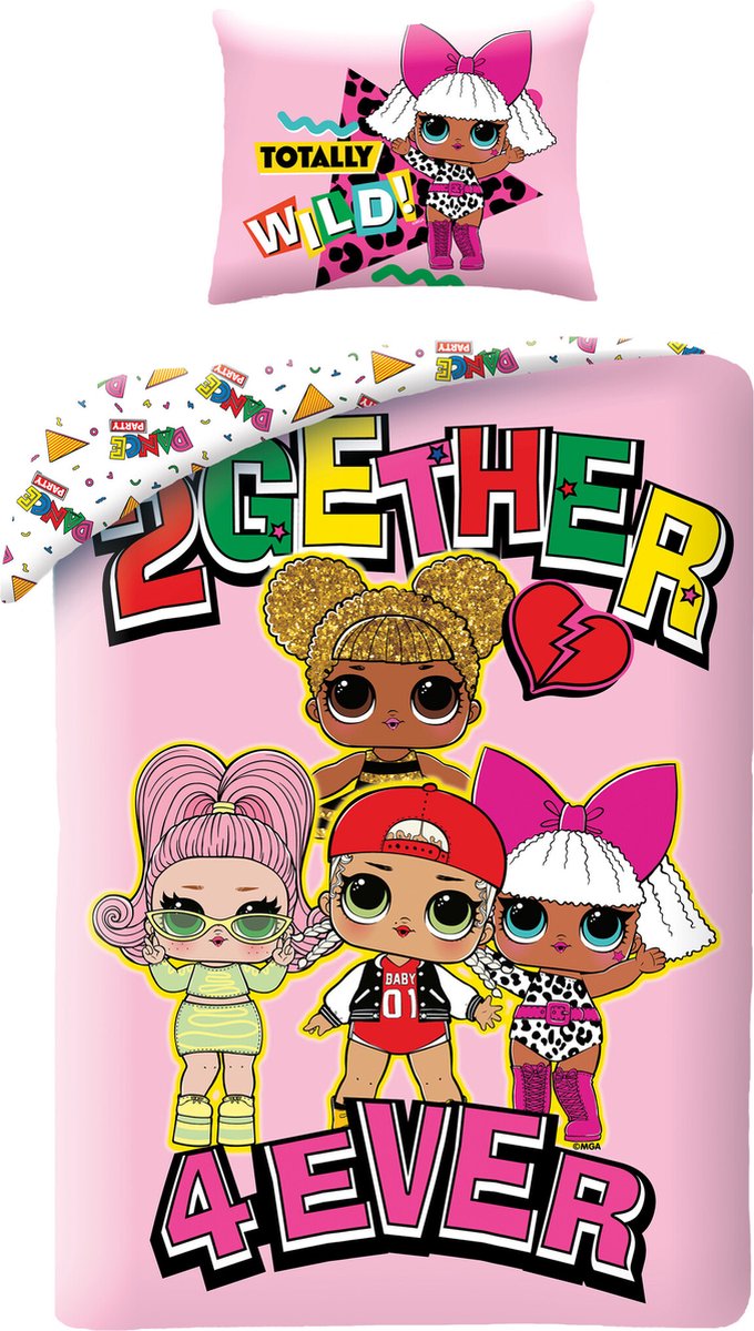 LOL Surprise! Dekbedovertrek, 2gether 4ever. Vrolijk, katoenen dekbedovertrek van de geweldige L.O.L. Suprise! poppen. Deze meiden zijn vriendinnen voor het leven! De dubbelzijdige bedrukking en het extra grote kussensloop zorgen ervoor dat jij een echte blikvanger te pakken hebt voor je slaapkamer. Ken of ben jij een fan van LOL Surprise? Dan is dit ook een ideaal cadeau-idee voor een verjaardag of de feestdagen!