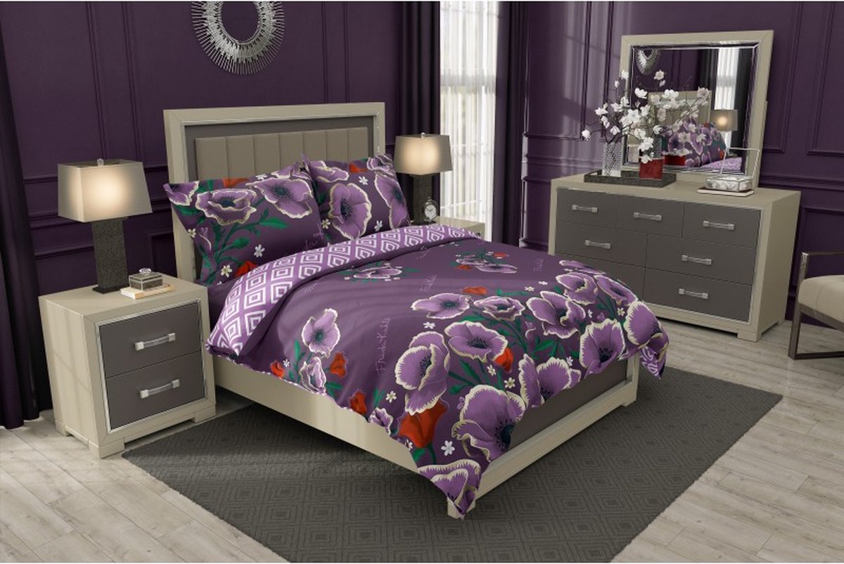 Breng de iconische kunst van Frida Kahlo tot leven met dit stijlvolle dekbedovertrek. Rijkelijk versierd met rode en lila bloemen op een paarse achtergrond, geïnspireerd op de bloemen die vaak te zien is in de kunst van Frida Kahlo en welke symbool staan voor zowel kracht als schoonheid. Dit katoenen 1-persoons dekbedovertrek heeft een dubbelzijdige bedrukking en wordt compleet gemaakt door het extra grote kussensloop. Ben je op zoek naar een origineel cadeau voor een fan van Frida Kahlo of een kunstliefhebber? Dan heb je met dit fantastische dekbedovertrek een gegarandeerde hit!