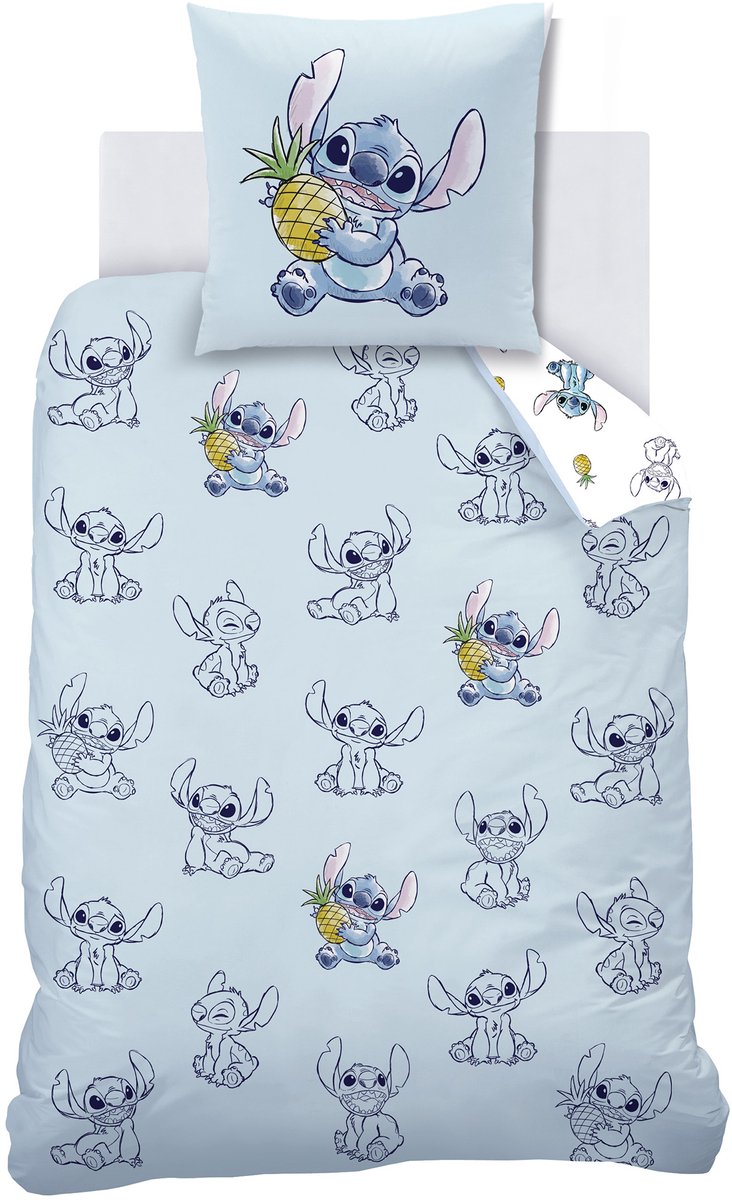Disney Lilo & Stitch Dekbedovertrek, Ananas. Breng de tropische sferen van Stitch in huis met dit vrolijke dekbedovertrek. Stitch is maar wat trots op zijn grote ananas! Deze set heeft een leuk en subtiel patroon van Stitch en heeft een dubbelzijdige bedrukking, wat leuke opties geeft bij het opmaken van het bed. Gemaakt van katoen, wat heerlijk zacht en comfortabel aanvoelt. Maak een echte Lilo & Stitch fan blij met dit leuke dekbedovertrek voor een verjaardag of andere feestelijke dag!