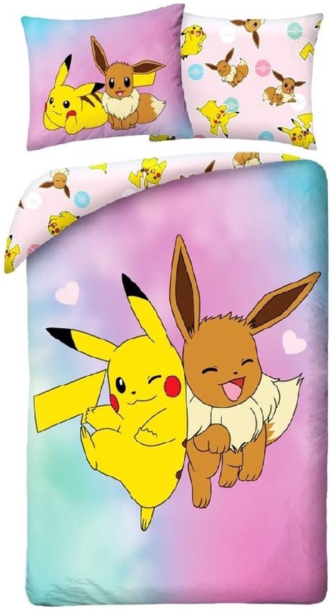 Dekbedovertrek Pikachu Eevee - Eenpersoons - 140 x 200 + 70 x 90 cm - Polyester