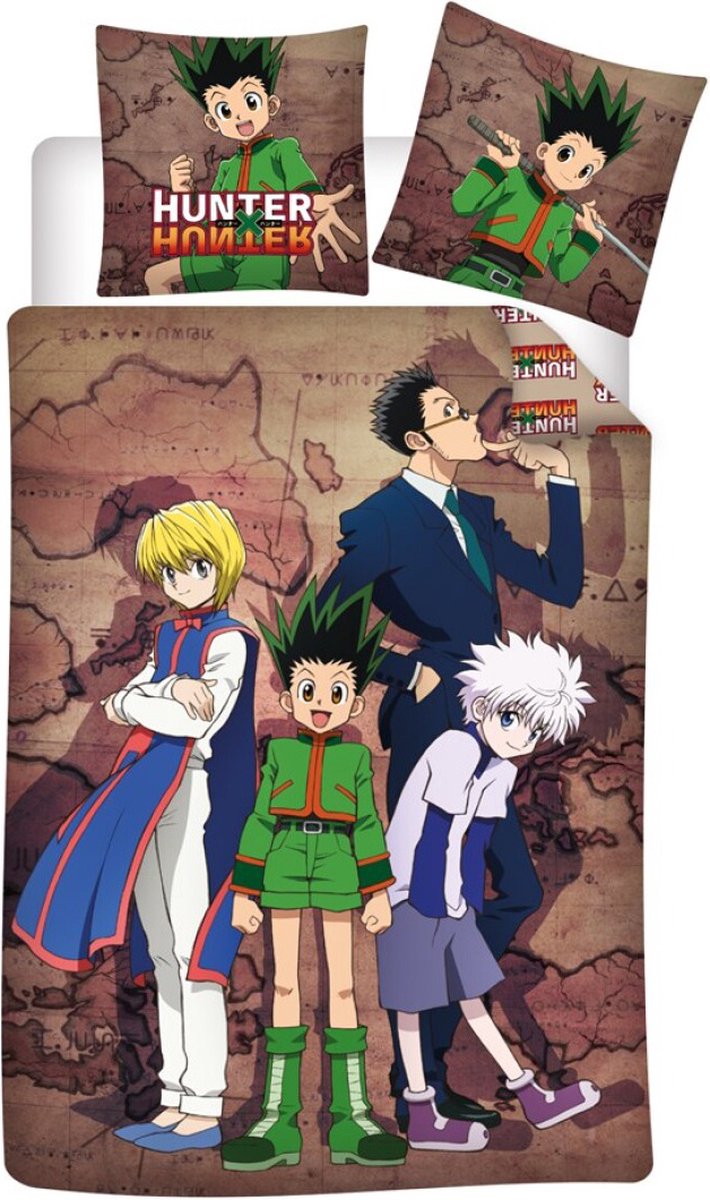 Hunter Hunter Dekbedovertrek, Gon. Stoere, katoenen dekbedovertrek van de manga-serie Hunter Hunter, ook wel bekend als Hanta Hanta. De jongen Gon Freecss wil graag Hunter worden om zijn vader Ging terug te vinden. Zal dit hem lukken? Ben jij ook fan van deze gave actie-serie? Of fan van Japanse manga? Dan mag dit toffe dekbedovertrek niet ontbreken! Voorzien van een dubbelzijdige print (zowel de overtrek als kussensloop),waardoor er leuk mogelijkheden zijn bij het opmaken van het bed. Een echte blikvanger en een waanzinnig cadeau om te geven aan een liefhebber voor een verjaardag of de feestdagen.