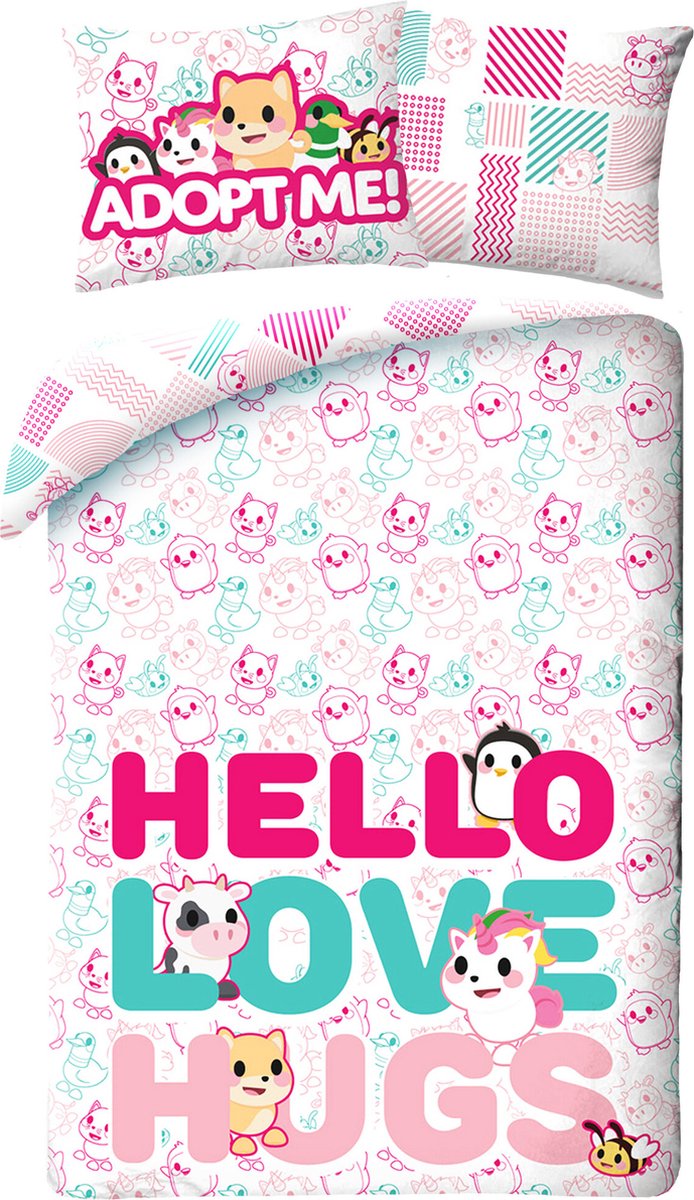 Adopt Me Dekbedovertrek 140 x 200 cm - 70 x 90 cm Wij raden aan om het overtrek binnenstebuiten te wassen om de duur van het dekbed te verlengen. Materiaal: 100% katoenAfmetingen dekbedovertrek: 140 x 200 cm (B x L)Afmetingen kussensloop: 70 x 90 cm (L x B) Inhoud:1 Dekbedovertrek1 Kussensloop lees meer over dit product