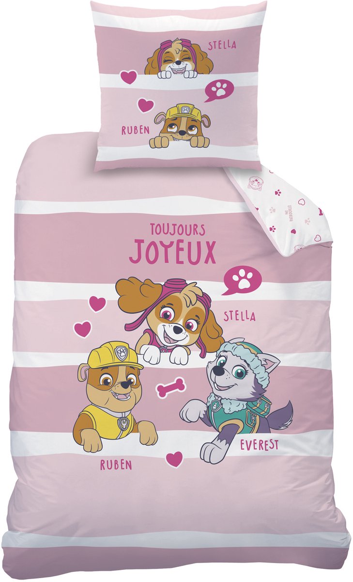 Dat wordt lekker slapen onder dit mooie roze Paw Patrol dekbedovertrek. Op dit katoenen overtrek staan de hoofdrolspelers uit deze populaire serie afgebeeld; Everest, Skye en Rubble. Zijn dit ook jouw helden? Dan mag deze set niet in je collectie ontbreken! Een waardevolle aanvulling voor elke slaapkamer! Het overtrek heeft een dubbelzijdige bedrukking en wordt geleverd met een bijpassend kussensloop van 63 x 63 cm. Ben je op zoek naar een origineel cadeau voor een echte Paw Patrol fan? Zoek dan niet verder!