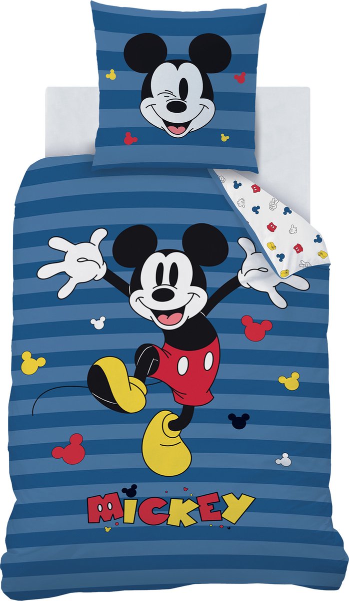 Disney Mickey Mouse Dekbedovertrek, Stripes. Stoer, katoenen dekbedovertrek van de vrolijke Mickey Mouse. Met dit grappige dekbedovertrek heb jij een gegarandeerde blikvanger te pakken voor de slaapkamer. Ben jij een fan van deze muis? Dan mag deze set niet in je collectie ontbreken! Zowel de overtrek als de kussensloop zijn dubbelzijdig bedrukt, waardoor je kan afwisselen met het opmaken van het bed. Ook leuk om cadeau te geven aan een echte fan van Disney voor een verjaardag of de feestdagen!