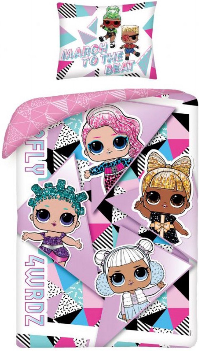 LOL Surprise! Dekbedovertrek March to the Beat 140 x 200 cm - Katoen - 70 x 90 cm LOL Surprise! Dekbedovertrek, March to the Beat. Dans mee met deze leuke LOL Surprise meiden! Dit gave katoenen dekbedovertrek met een retro-dessin is een echte blikvanger voor de slaapkamer. De vrolijke print, de dubbelzijdige functie van het overtrek en de extra grote kussensloop, zorgen ervoor dat er gespeeld kan worden met het opmaken van het... lees meer over dit product