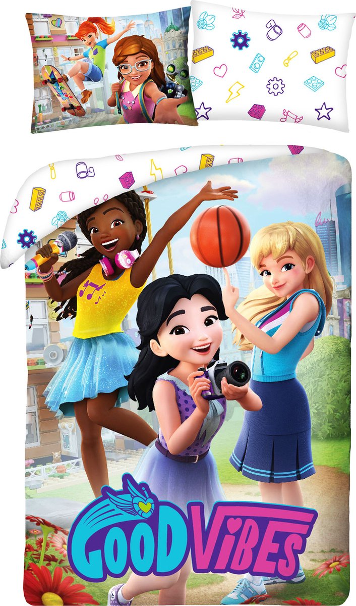 Lego Dekbedovertrek Good Vibes. Geweldig eenpersoons katoenen dekbedovertrek met een design van de karakters van Lego Ninjago. Zowel het overtrek als het kussen zijn tweezijdig bedrukt, dus meerdere mogelijkheden voor het opmaken van het bed. Voor elke liefhebber is dit een fantastisch cadeau! De katoenen stof maakt het dat het goed aanvoelt op de huid. Wordt geleverd met een extra groot kussensloop.