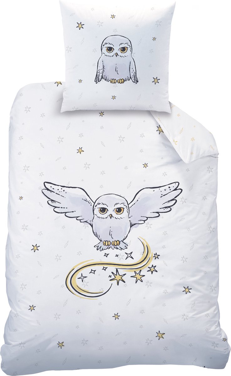 Harry Potter Dekbedovertrek, Owl. Mooi, katoenen dekbedovertrek met een dessin van Hedwig de Uil, bekend uit de Harry Potter films. Ben jij op zoek naar een mooi dekbedovertrek in Harry Potter thema? Zoek dan niet verder! Deze mooie set heeft een dubbelzijdige bedrukking, met op de achterkant een patroon van sterren. Leuk om eens af te wisselen met het opmaken van het bed. Ook leuk om cadeau te geven aan een echte Harry Potter fan voor een verjaardag of de feestdagen.