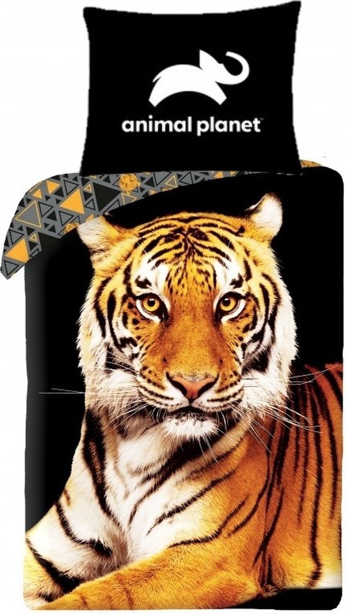 Animal Planet Dekbedovertrek tijger 140 x 200 cm Animal Planet Dekbedovertrek, Tijger. Een geweldig katoenen dekbedovertrek van Animal Planet met een indrukwekkende afbeelding van een Tijger. Een echte aanwinst voor de slaapkamer van een dierenliefhebber. Door het contrasterende dessin op de achterkant krijg je een grappig effect; sla hem open met opmaken of gebruik het overtrek dubbelzijdig. Let op: extra groot kussensloop! E... lees meer over dit product