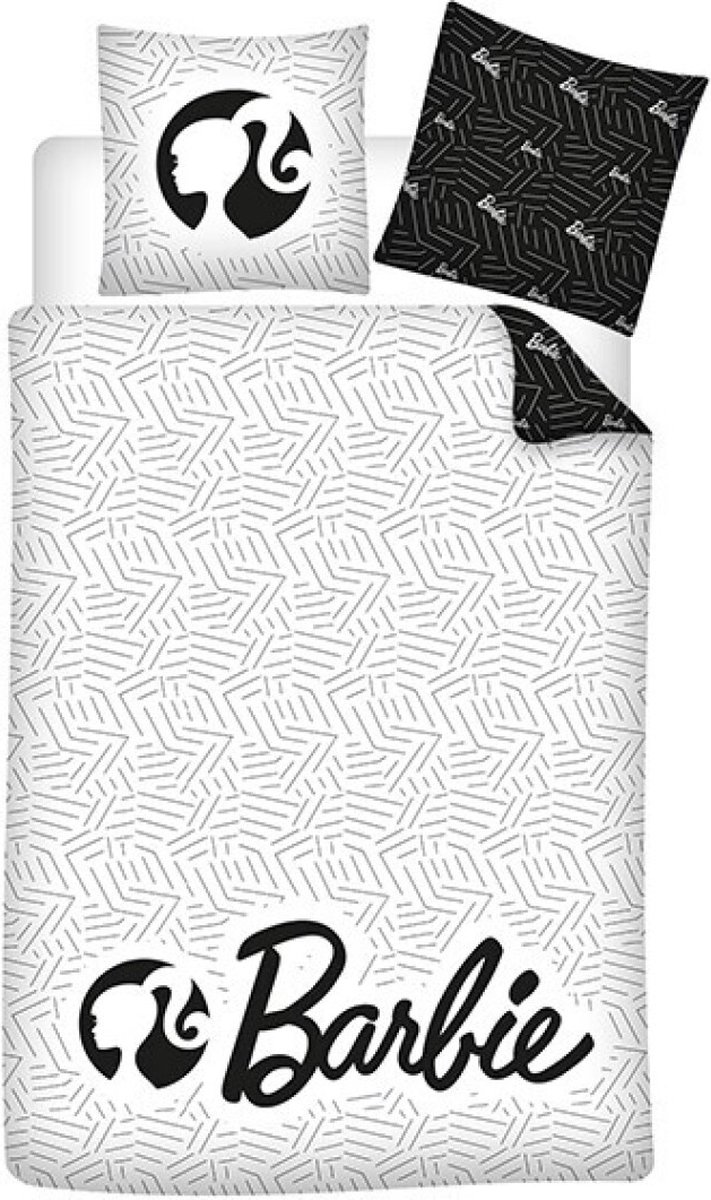 Barbie Dekbedovertrek, Black White. Leuk zwart/wit polyester dekbedovertrek van de populaire Barbie. Bekend van de poppen en de film met Margot Robbie. Ben jij nog op zoek naar een blikvanger voor de slaapkamer? Zoek dan niet verder! Deze dubbelzijdige set zorgt ervoor dat je op diverse manieren het bed kan opmaken. Een leuk cadeau idee voor elke fan van Barbie voor een verjaardag of andere feestdag.