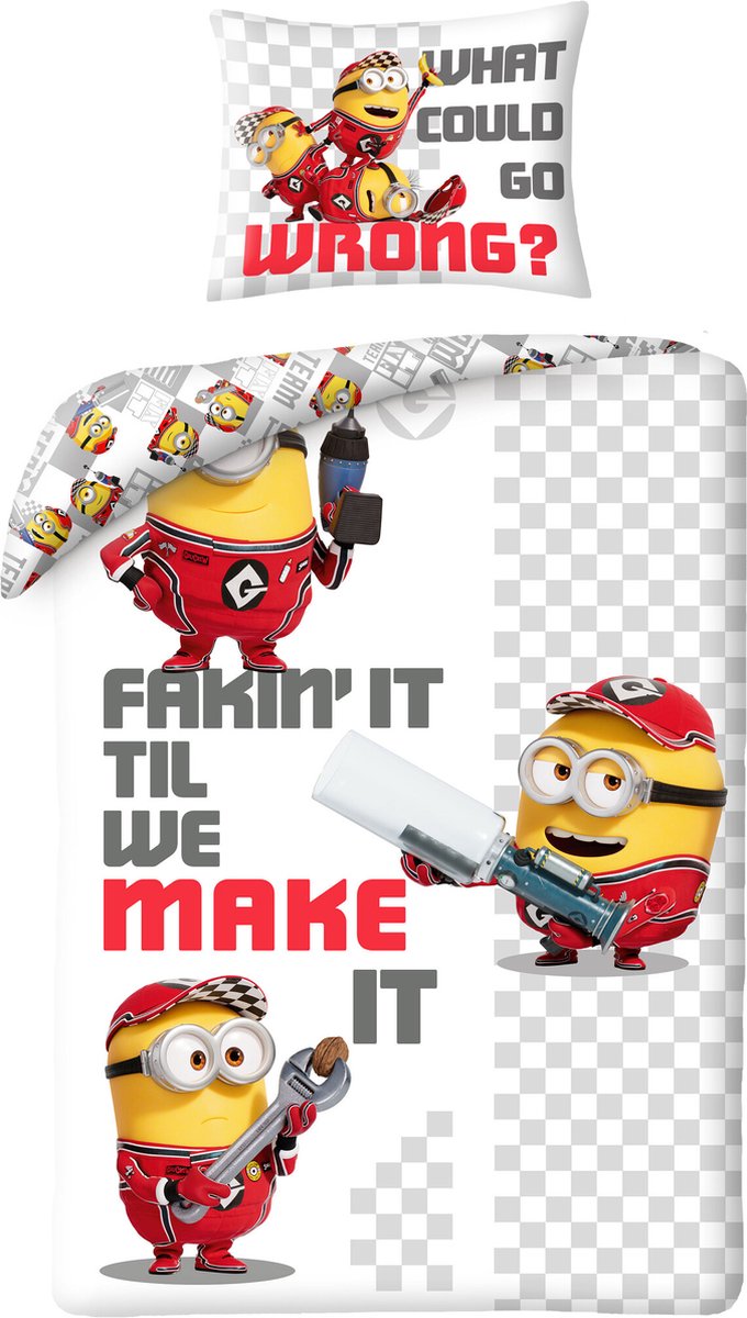 Minions Dekbedovertrek Fixers - 140 x 200 cm - Katoen Minions Dekbedovertrek Fixers - 140 x 200 cm - Katoen. Geweldig katoenen dekbedovertrek van Minions. O.a. Kevin & Stuart vechten om de surfbord, waar zij zo dol op zijn. Deze gekke wezentjes zorgen wel voor een echte blikvanger in jouw slaapkamer! Het overtrek is tweezijdig bedrukt, wat leuke variaties geeft bij het opmaken van het bed. Wordt geleverd met een extra groot ku... lees meer over dit product