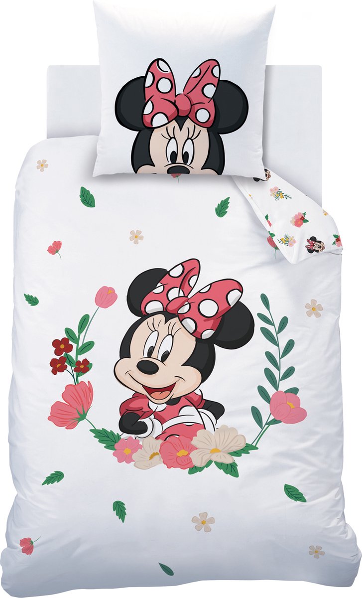 Disney Minnie Mouse Dekbedovertrek, Flower. Heerlijk slapen onder dit katoenen dekbedovertrek van Minnie Mouse. De dubbelzijdige bedrukking van deze set geeft leuke mogelijkheden bij het opmaken; kies je voor de Minnie kant of de kant met het bloemetjes dessin? Hoe dan ook, met deze set heb je een echte blikvanger te pakken. Een geweldige aanwinst voor elke fan van Minnie Mouse! Ook leuk om cadeau te geven aan een echte Disney liefhebber voor een verjaardag of de feestdagen. Wie maak jij hier blij mee?