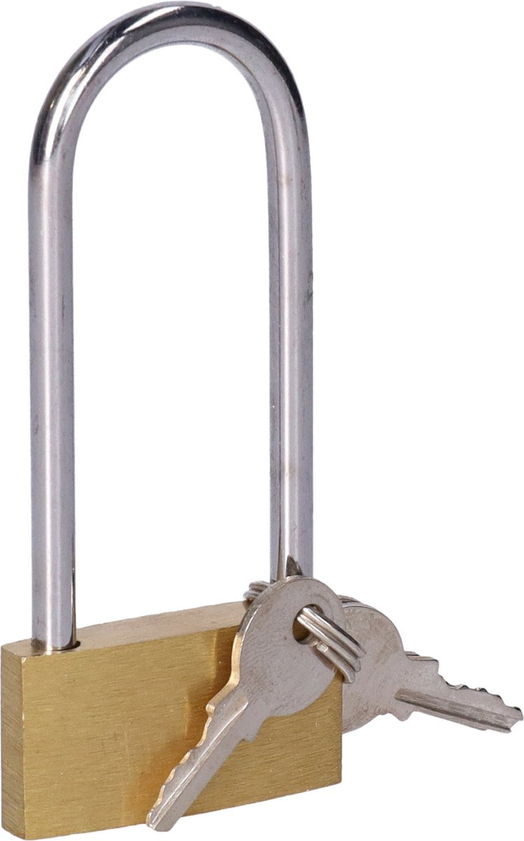 Op zoek naar een betrouwbaar hangslot om iets op slot of vast te zetten? Dan is dit CM Hangslot met een beugel van 40 mm precies wat jij nodig hebt. Dit metalen hangslot met sleutels heeft een beugel van 40 mm en een totaal formaat van 7 x 3.5 x 1 cm. Het hangslot wordt geleverd met 3 sleutels.