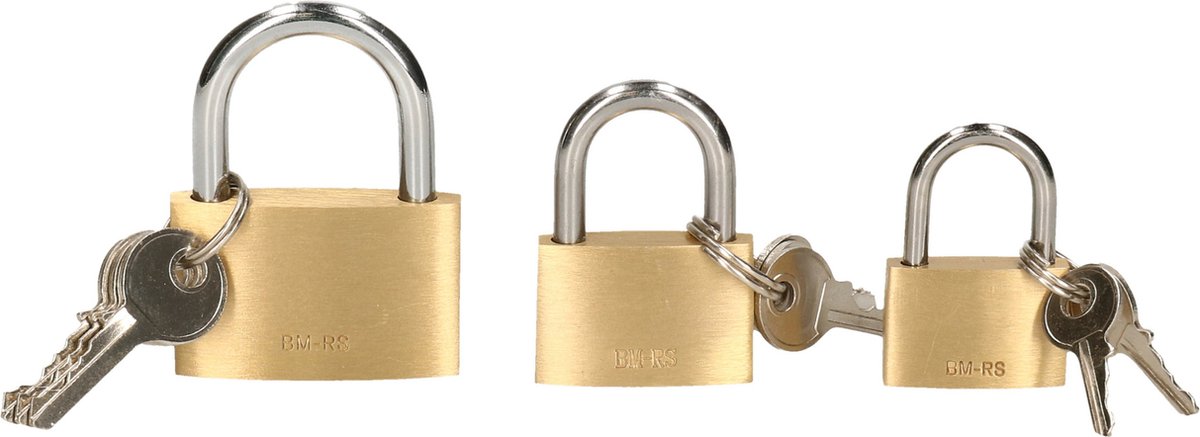 Brüder Mannesmann Bruder Mannesmann Hangslot met 3 sleutels - set van 3 - 25 mm - 30 mm - 40 mm - messing -