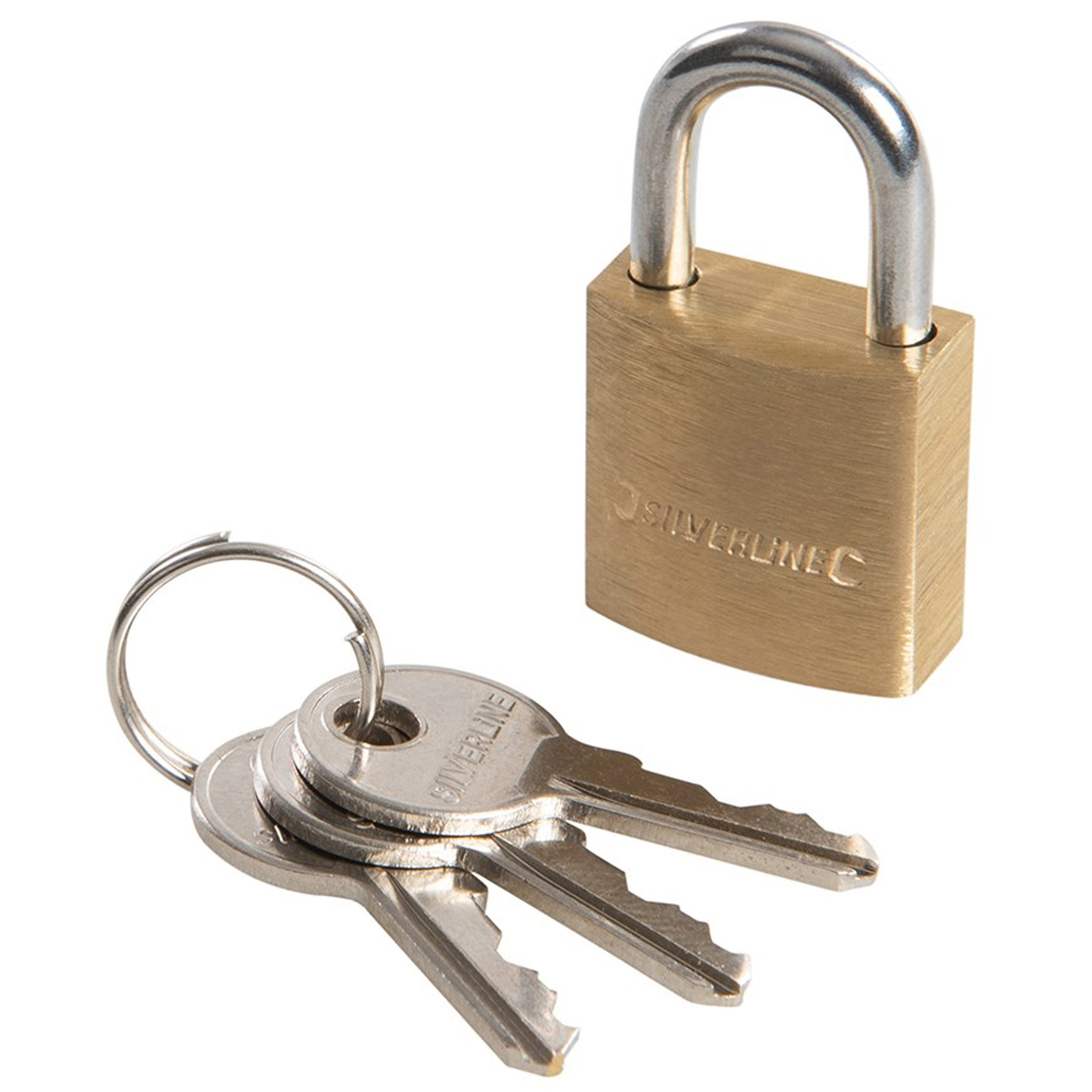 Silverline hangslot van 40 mm in messing met 3 sleutels, ideaal als kofferslot.
