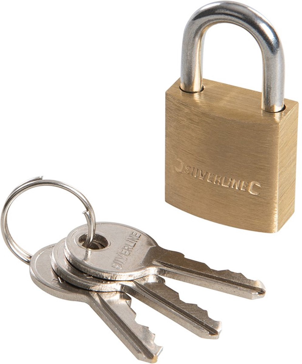 Silverline Hangslot met 3 sleutels - 40 mm - messing - kofferslot -