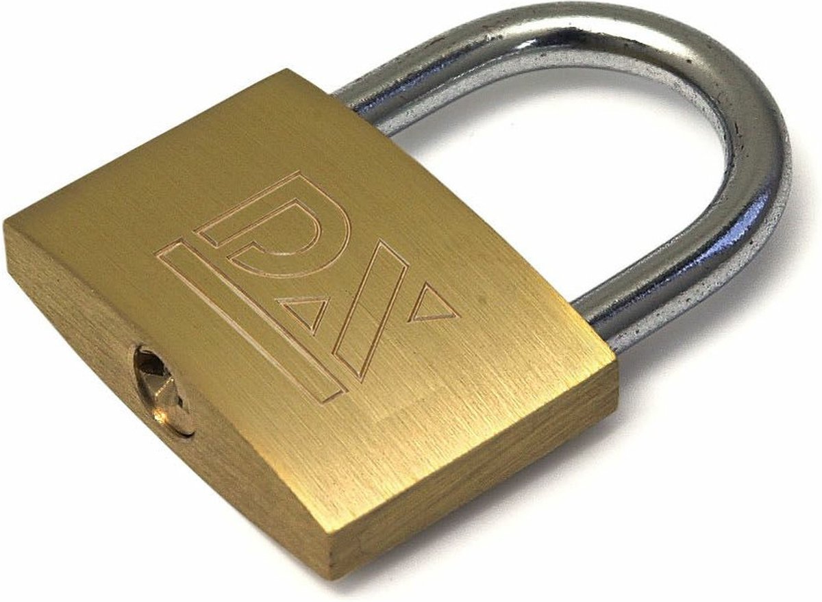 Zware messing kast met geharde stalen beugel. Automatisch sluitend met 2 cilindersleutels. Verschillend sluitend. lees meer over dit product