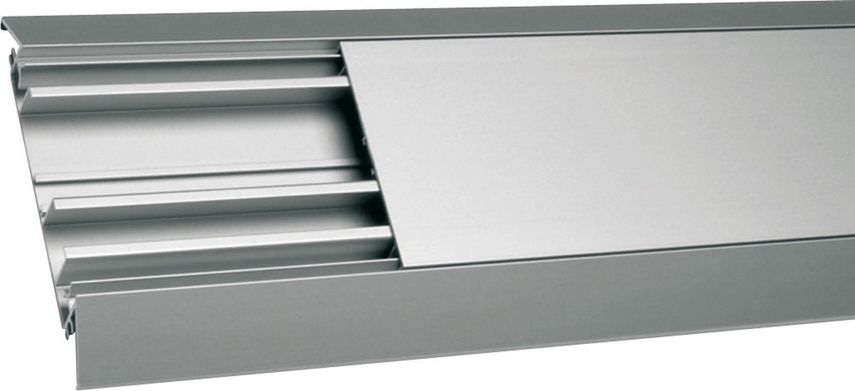 Slijtvaste vloerkabelgoot van geanodiseerd aluminium, 2-kamersysteem met kabelbevestiging voor gescheiden geleiding van energie- of datakabels. Uiterst belastbaar door scheidingsstrips over de... lees meer over dit product