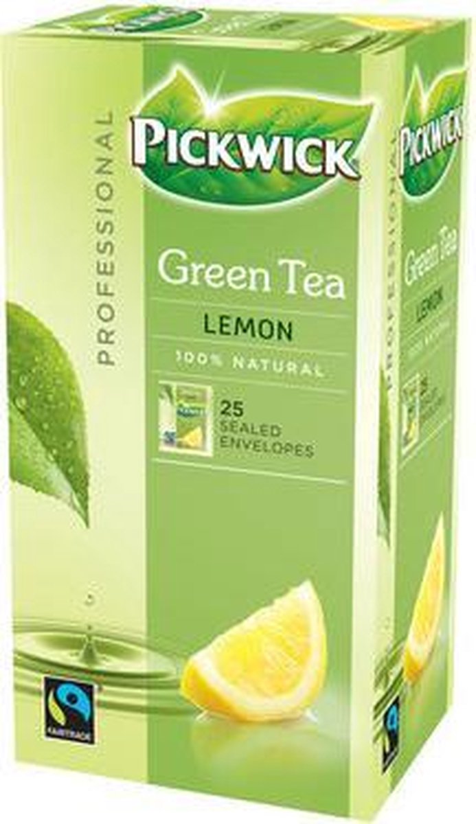 Pickwick groene thee lemon is een frisse groene thee met een karakteristieke lichte kleur. Door een vleugje citroen krijgt de thee een heel verfrissende smaak. Er zitten 75 zakjes a 2 gram per doosje.