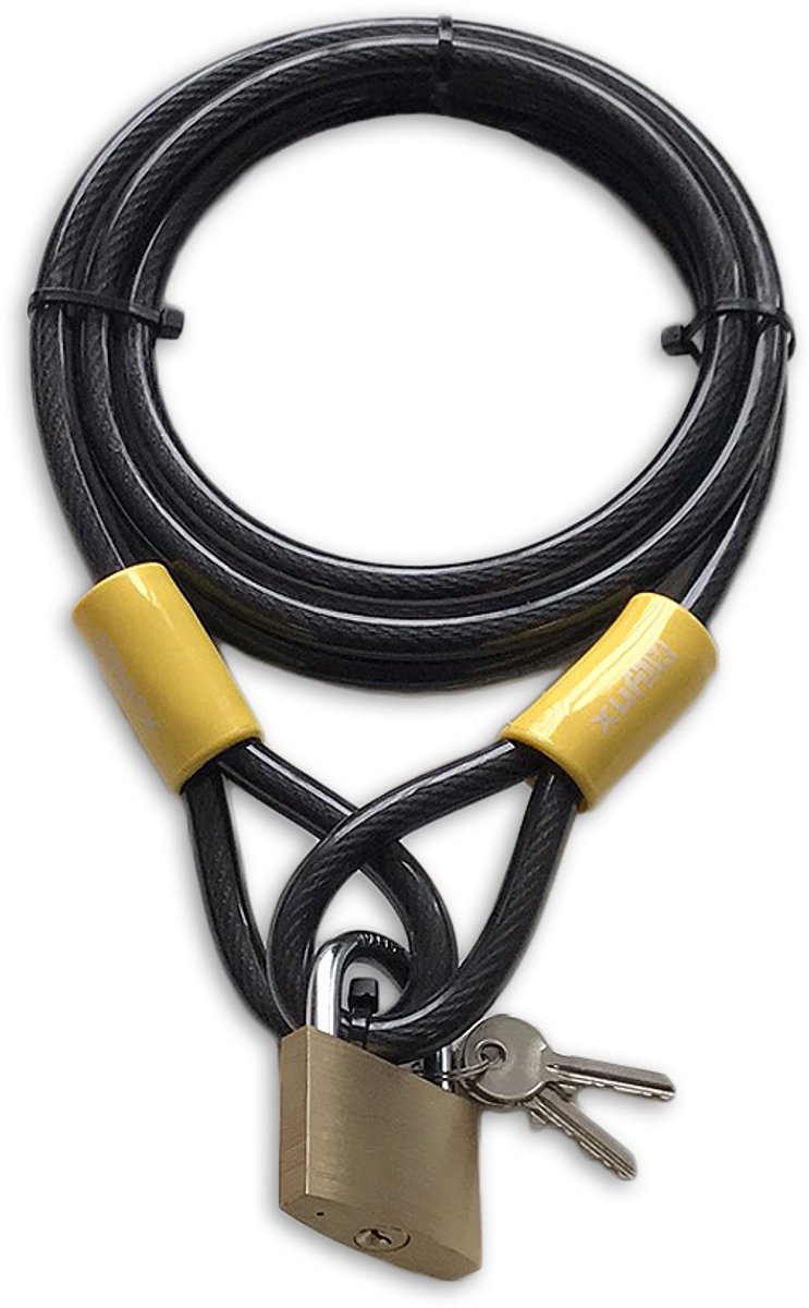 Lynx 250 centimeter kabelslot / terraskabel is ideaal voor het vastzetten van meerdere fietsen, boten of tuin/terrasmeubilair. Het slot wordt geleverd inclusief een los messing hangslot en 2 sleutels. Het slot is 10 mm dik.
