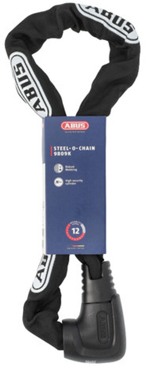ABUS Steel-O-Chain 9809K – Het antwoord op picking en manipulatie Met het Steel-O-Chain 9809K kettingslot maakt u het dieven moeilijk. Dit slot is uitgerust met de ABUS XPlus-cilinder en biedt betrouwbare bescherming tegen manipulatiepogingen. Dankzij de 9 mm dikke vierkante ketting van gehard staal is het zelfs bestand tegen agressieve pogingen tot diefstal met een kniptang of tang. Zo biedt de Steel-O-Chain 9809K goede bescherming bij een gemiddeld diefstalrisico. Om ook de lak van de fiets op lange termijn te beschermen, is de stalen ketting ommanteld met een textielslang. Zelfs het sleutelgat wordt door een afdekking beschermd tegen vuil en corrosie. Perfect beveiligd kunt u rustig ontspannen. Kettingsloten van ABUSDe kettingsloten van ABUS bieden onze beproefde hoge materiaalkwaliteit – voor meer veiligheid in openbare ruimtes. Overige productvoordelen:➦ ABUS-Security Level 12➦ Incl. codekaart met sleutelnummer voor het laten maken van een reservesleutel, mocht u uw sleutel kwijtraken➦ ABUS-sleutelservice voor het gemakkelijk nabestellen van sleutels➦ Made in Germany