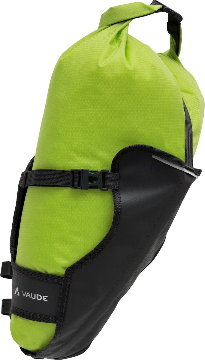 De trailsaddle bevestigt je eenvoudig onder het zadel en is makkelijk toegankelijk. Mooie bijkomstigheid is dat hij niet alleen je spullen beschermt, maar ook spatwater tegenhoudt. De uitneembare opbergzak is af te sluiten met een rolsluiting en is daardoor in volume verstelbaar. Als je minder spullen meeneemt, rol je de zak verder en compacter op. De uitneembare zak zet je vast met de verstelbare klikgespen.