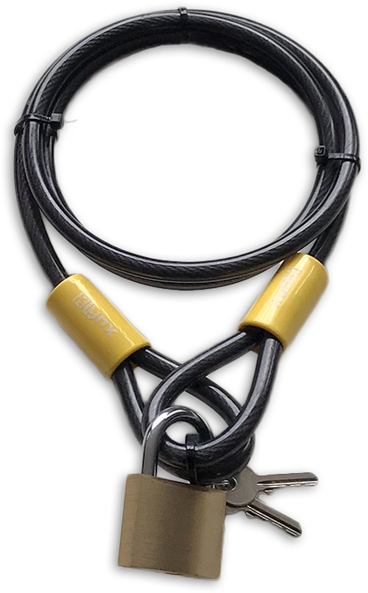 Lynx 150 centimeter kabelslot met los messing hangslot en 2 sleutels. Ideaal voor het vastzetten van meerdere fietsen, boten of tuin/terrasmeubilair.
