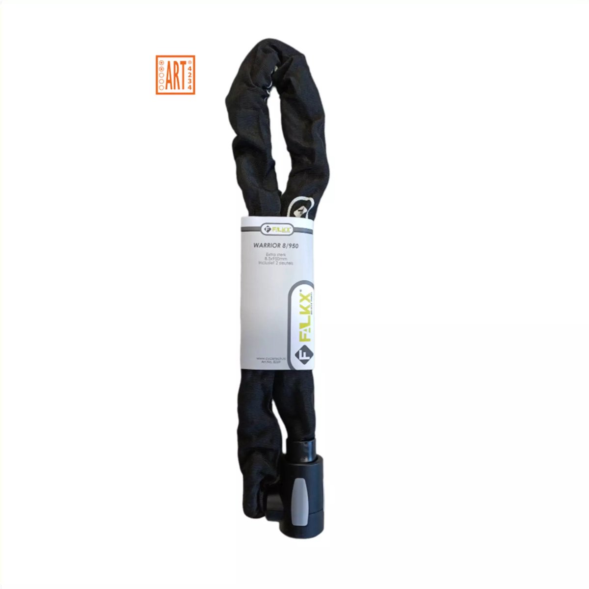 De Falkx Warrior 8/950 ART** kettingslot is de ultieme keuze voor iedereen die zijn fiets veilig wil stallen. Met een robuuste ketting van 8,5 mm dik en een lengte van 950 mm, biedt dit slot de perfecte balans tussen flexibiliteit en veiligheid. Of je nu in de stad woont of je fiets op het platteland parkeert, dit kettingslot zorgt ervoor dat je fiets goed beschermd is tegen diefstal.