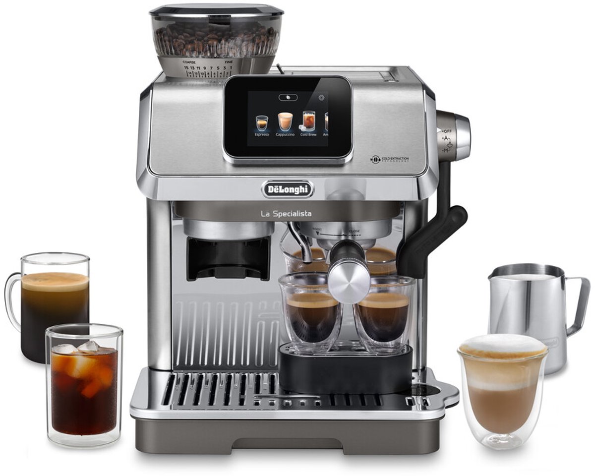 Nu ook voorzien van de nieuwe Cold Extraction Technology, waarmee je in minder dan 5 minute café-kwaliteit Cold Brew thuis kunt maken. Zo kun je met de La Specialista Touch niet alleen genieten van warme koffierecepten (Espresso, Cappuccino, Flat White, Latte, etc.),maar ook van café-kwaliteit Cold Brew recepten binnen 3 minuten (Cold Brew Cappuccino, Cold Brew espresso of ander Cold Brew recept).