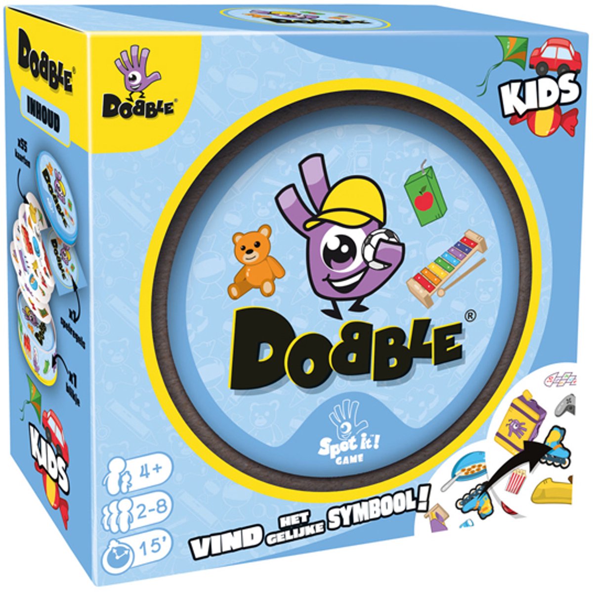 Eigenschappen: Dobble Kids is een superleuk spel voor kinderen. Het spel bevat 30 speelkaarten. De kaarten hebben afbeeldingen van dieren. Vind als eerste hetzelfde dier op twee verschillende kaarten.