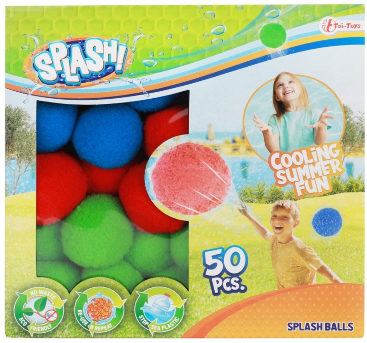 Splash - Super Splashballen - 50 stuks - Ø5cm - Milieuvriendelijk De milieuvriendelijke versie van waterballonnen. Geen opruimen meer na een watergevecht! Deze splashballetjes zijn super leuk om mee te nemen naar het strand of het zwembad. Dompel de ballen in het water en voilà. Maak je eigen spelletjes en koel lekker af tijdens een hete zomerse dag! Er zitten 50 balletjes in deze doos. Voordelen✓ Milieuvriendelijke oplossing ... lees meer over dit product